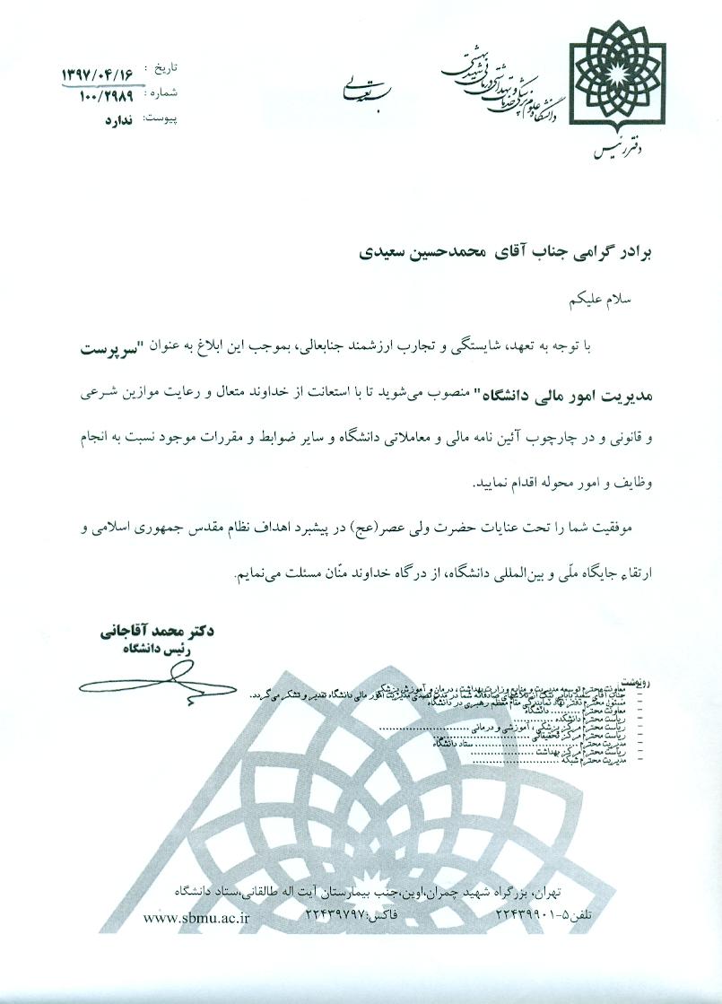 انتصاب آقای محمدحسین سعیدی به عنوان سرپرست مدیریت مالی دانشگاه